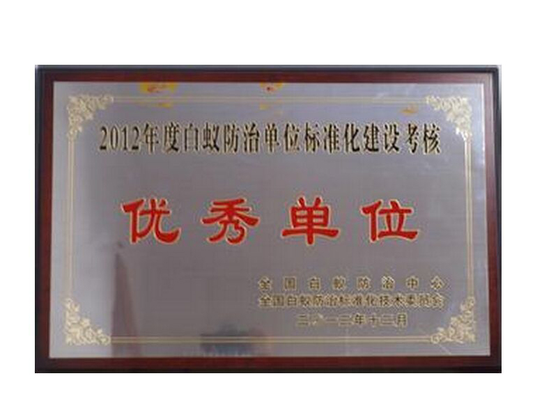 • 2012年度白蟻防治單位標(biāo)準(zhǔn)化建設(shè)考核優(yōu)秀單位